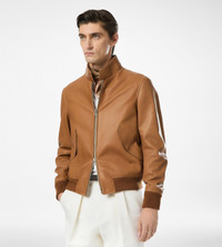 PRODUCT NO: LBG004-LMG032 A sharply cut Harrington jacket in grain leather, defined by smooth structure and modern TOM FORD attitude. Composition: 100% Calfskin Made in Italy