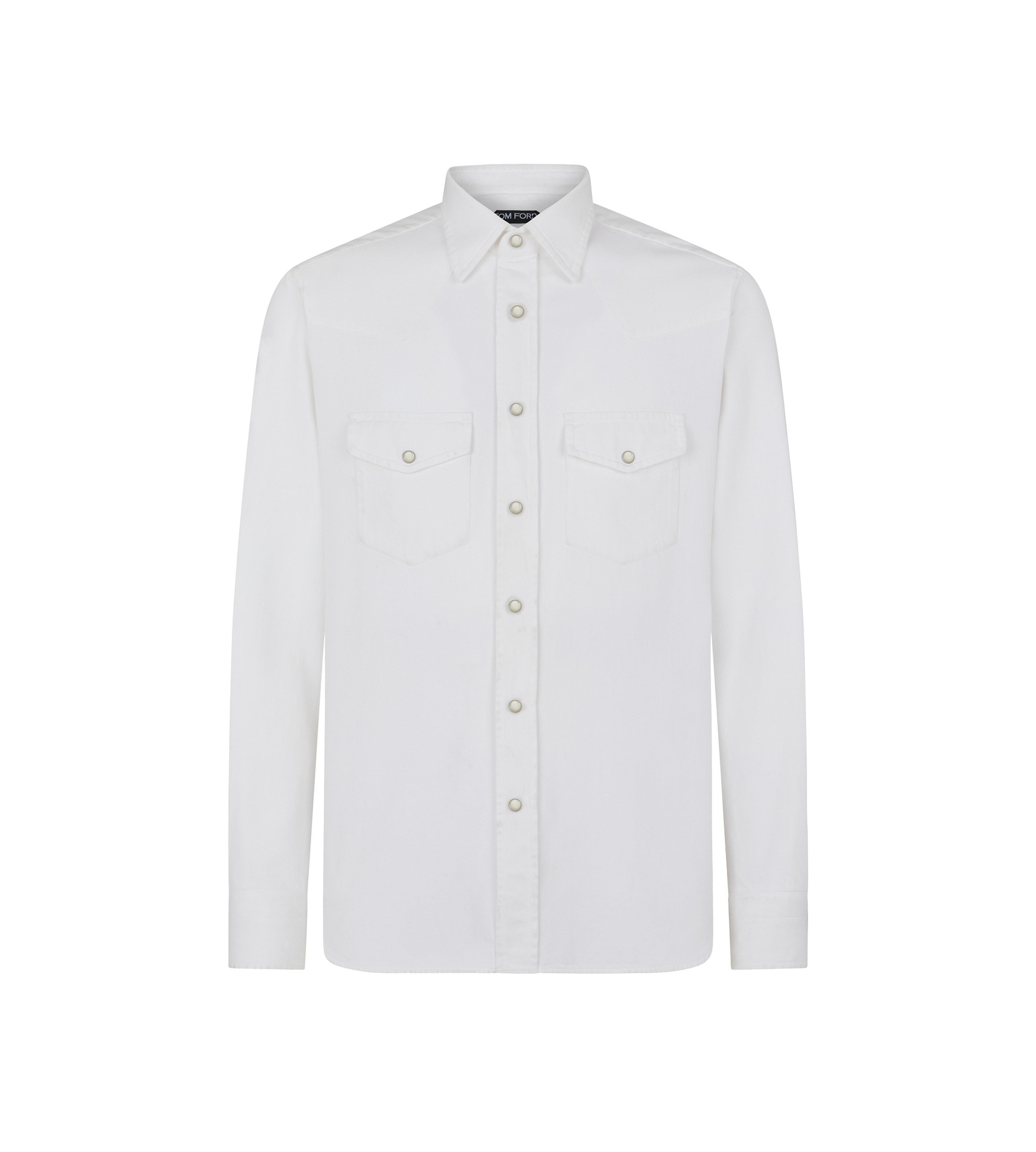 - WESTERN SHIRT - SNAP CHEST POCKETS - WASHED WHITE DENIM - 100% COTTON - MADE IN ITALY