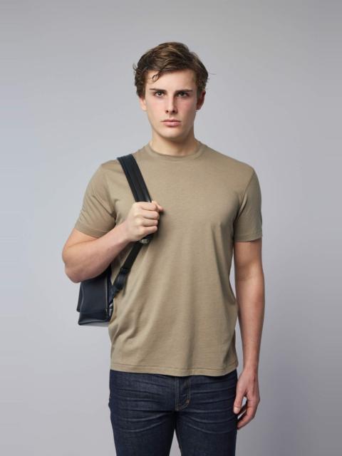 SKU: 154311 Brand style: JCS004-JMT012 T-shirt in dark shade, offering a classic and simple style with a small monogram detail near the hem. Ideal for versatile casual wear and easy to pair with other items. - Short sleeves - Crew neck - Straight hemline - Solid color design - Small monogram near hem Materials: 67% Lyocell, 33% Cotton Color: black
