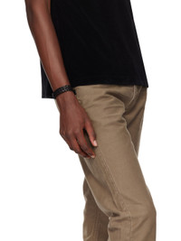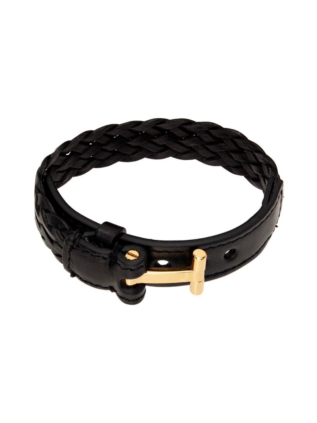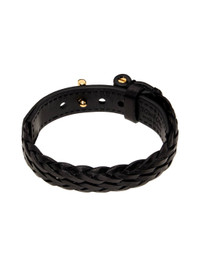 Braided buffed leather bracelet in black. · Logo hardware at post-stud fastening · Gold-tone brass hardware · L9.5" Supplier color: Black