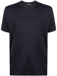 melange-effect lyocell-blend T-shirt This lyocell-blend T-shirt nods to TOM FORD's penchant for pared-back design. The classic crew-neck silhouette is rendered in navy-blue and finished with a very soft melange effect. Highlights - Navy blue - Lyocell-cotton blend - Melange effect - Crew neck - Short sleeves - Straight hem Imported Composition Lyocell 67%, Cotton 33% SIZE & FIT Model measurements Height 6 ft 1 in(1.85 m) Bust/Chest 36.22 in(92 cm) Hips 36.22 in(92 cm) Waist 27.55 in(70 cm) Measurement CHEST 39.37 in(100 cm) SLEEVE LENGTH 16.14 in(41 cm) FittingInformation Designed for a relaxed fit, this piece allows for comfort and movement when worn Made from a lightweight non-stretch fabric, this piece offers minimal elasticity when worn This piece fits true to size – take your usual size Washing instructions Machine Wash