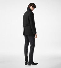 - FULLY LINED PEACOAT - LEATHER UNDERCOLLAR WITH LOZENGE TAB DETAIL - UPPER ZIP POCKETS AND LOWER FLAP POCKETS - UPPER POCKETS WITH LEATHER PIPING DETAIL - TOM FORD SIGNATURE HORN BUTTONS ALONG FRONT OPENING - TOM FORD LEATHER GRAB HANDLE - ,CENTRE BACK LENGTH 78CM - 90% WOOL 10% POLYAMIDE - MADE IN ITALY