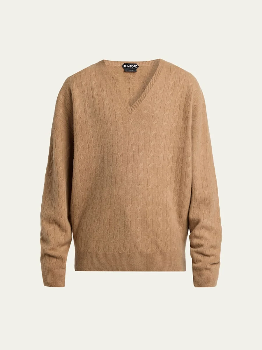 This TOM FORD cable knit sweater is crafted from 12gauge wool characterized by a lightweight finish, ideal for transitional wear or layering. 12 GG Vneck Ribbed cuffs and hem Pullover style Classic fit Wool Made in Italy