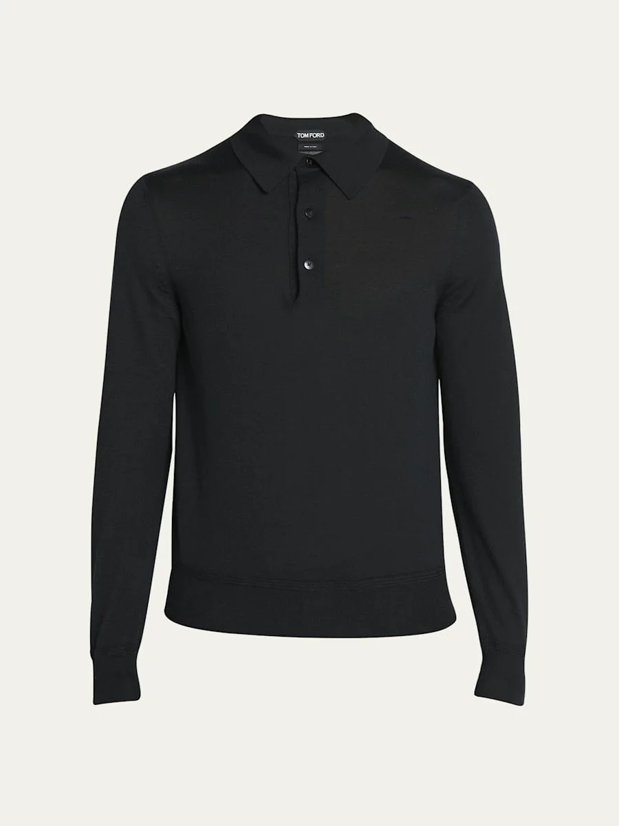 TOM FORD polo sweater crafted from a luxurious blend of cashmere and silk Point collar Three-button placket Genuine mother-of-pearl buttons Long sleeves Ribbed cuffs and hem Pullover style Cashmere/silk Made in Italy Model is 6'1"/185cm. Online Inquiries: BGS21_NC4TG| Store Inquiries: #4674774