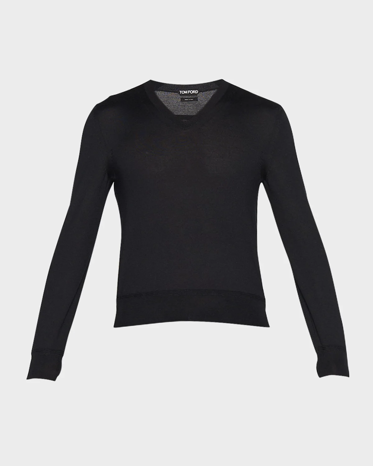 - TOM FORD sweater in ultra-soft fabric features a distinctive V-neckline - Long sleeves - Ribbed cuffs and hem - Pullover style - Classic fit - Cashmere - Made in Italy - Model is 6'1"/185cm.