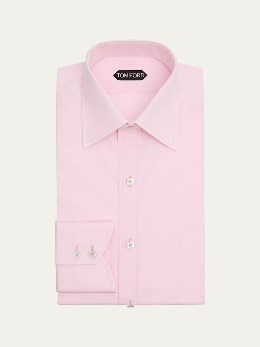 TOM FORD solid dress shirt Point collar; button placket Mother-of-pearl buttons Long sleeves Double-button cuffs Yoked back shoulders Shirttail hem Cotton Made in Italy Size Note: Item runs small, consider ordering a size up. Online Inquiries: BGS21_NEVEB| Store Inquiries: #4566873