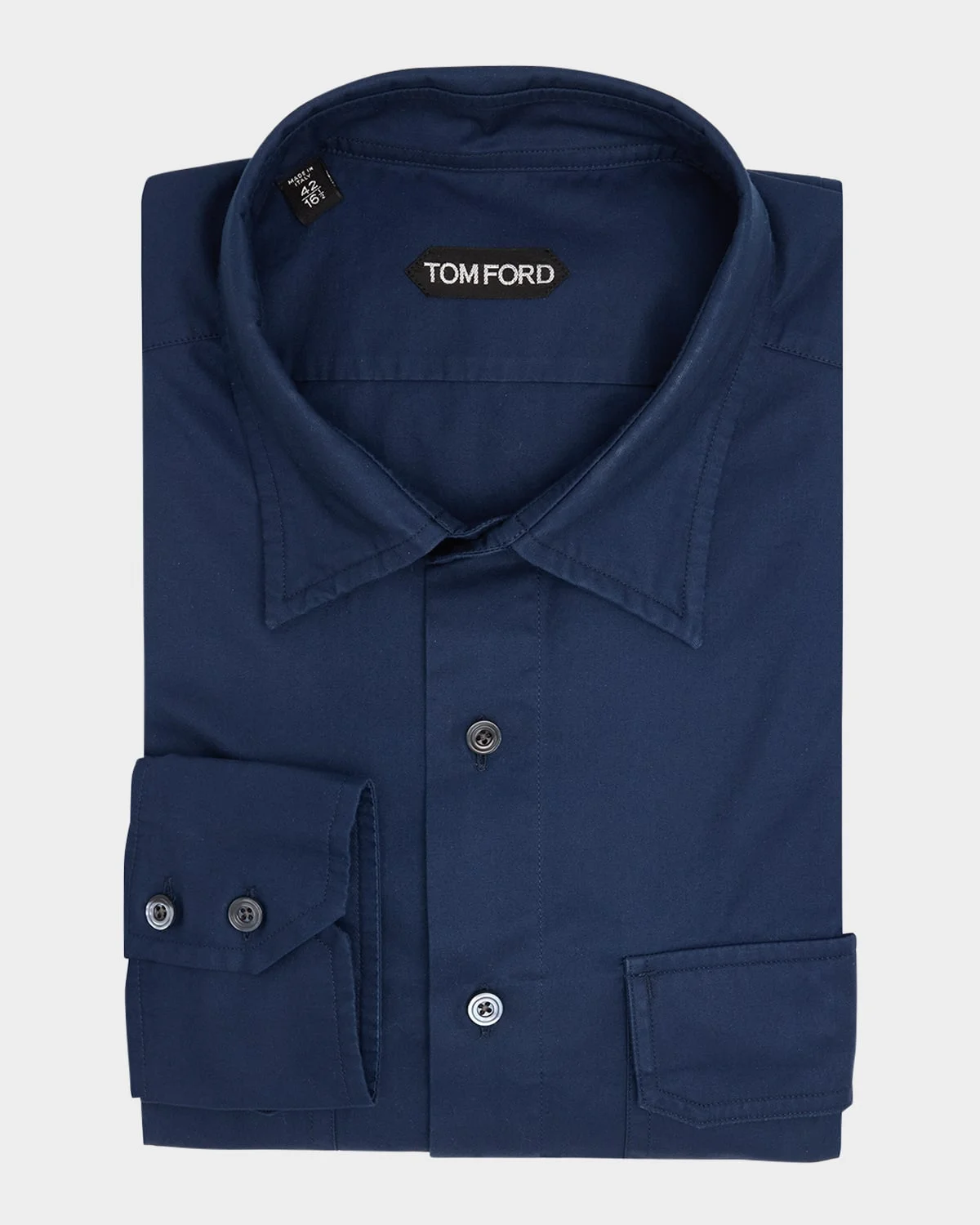 - TOM FORD solid overshirt in breathable cotton twill with elegant mother-of-pearl buttons - Point collar - Button placket - Chest flap pockets - Long sleeves - Mitered barrel cuffs - Shirttail hem - Cotton - Unlined - Professional cleaning recommended - Made in Italy - Proposition 65 warning for California residents