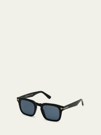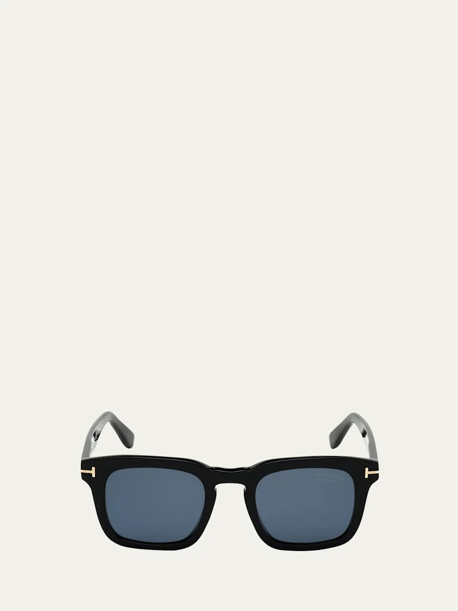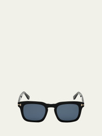 TOM FORD "Dax" square sunglasses in solid acetate. Eye/bridge/temple (in mm): 5020145. Monochromatic lenses; logo script Keyhole nose bridge. Signature "T" at temples. Notched arms. Made in Italy.
