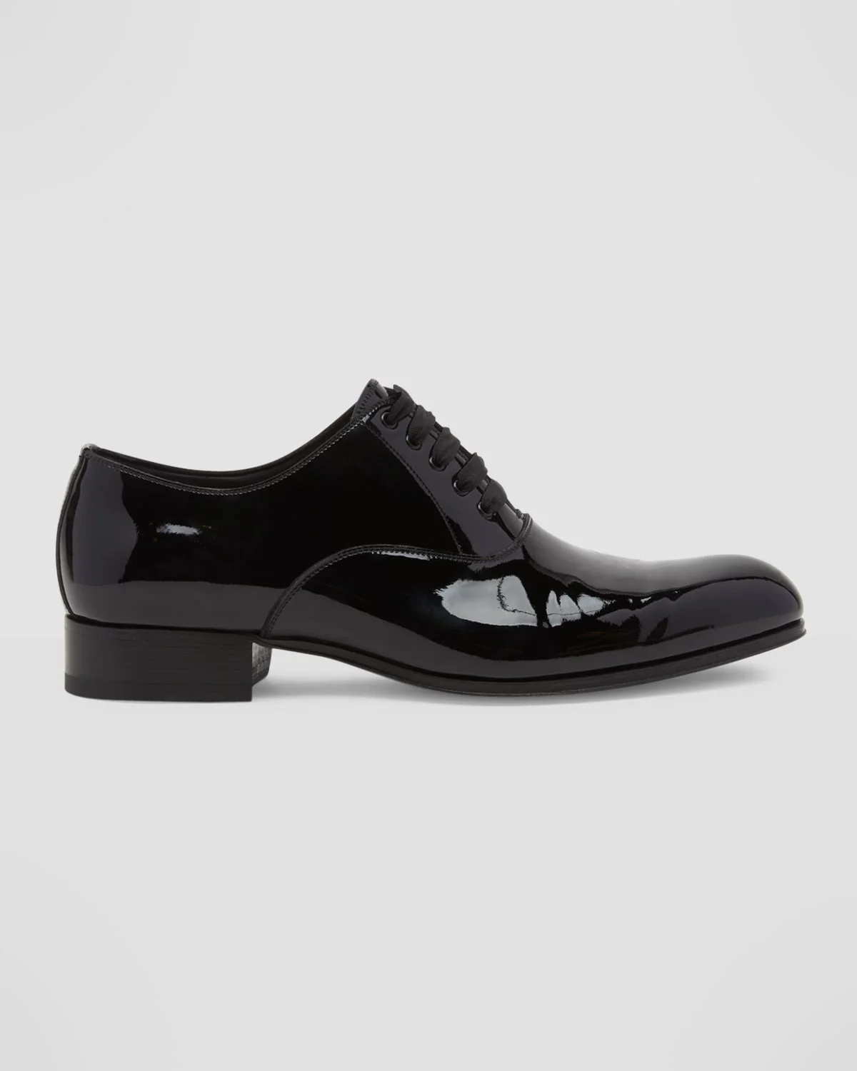 - TOM FORD "Edgar" oxfords in glossy patent leather - Stacked heel - Square toe - Lace-up vamp - Grosgrain shoelaces - Lining: Leather - Made in Italy