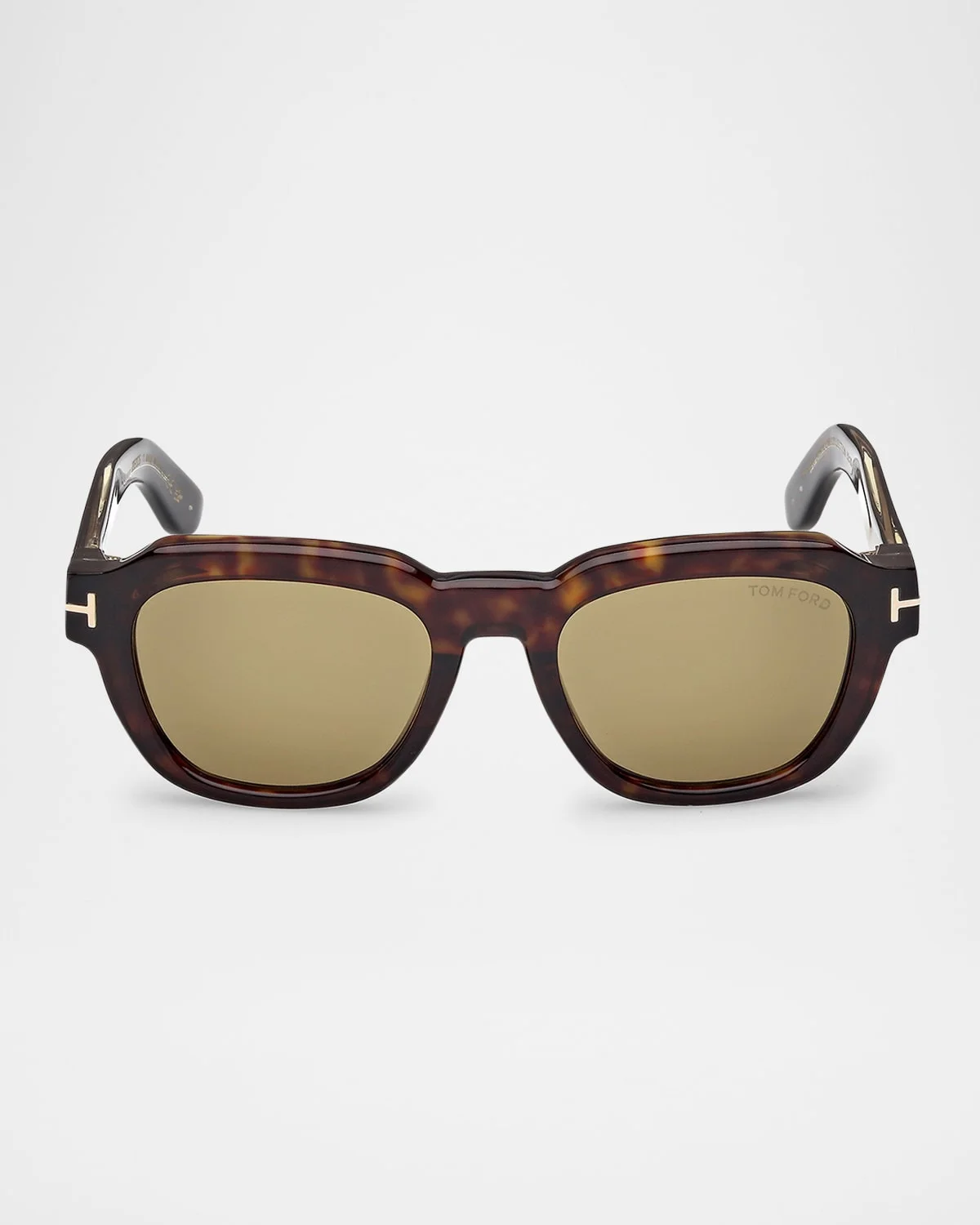 TOM FORD square sunglasses in acetate from the Icon collection Lens/bridge/temple (in mm): 59-16-148 Solid-color lenses Logo on the left lens Saddle nose bridge Metal T-temple decoration Branded temple tips Acetate Spot clean 100% UVA/UVB protection Made in Italy Proposition 65 warning for California residents