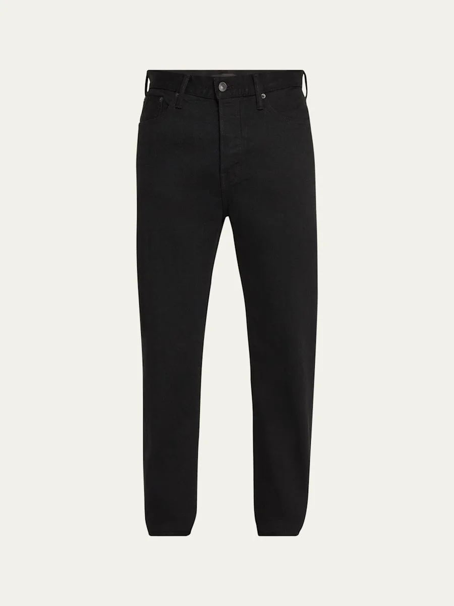 TOM FORD jeans in black-wash stretch denim Regular rise Five-pocket style Back leather logo patch Full length Standard fit Button/zip fly; belt loops Cotton/polyurethane Lining: Cotton/polyester Trim: Leather Made in USA Proposition 65 warning for California residents Model is 6'1"/185cm. Online Inquiries: BGS21_NC4RD| Store Inquiries: #4806250