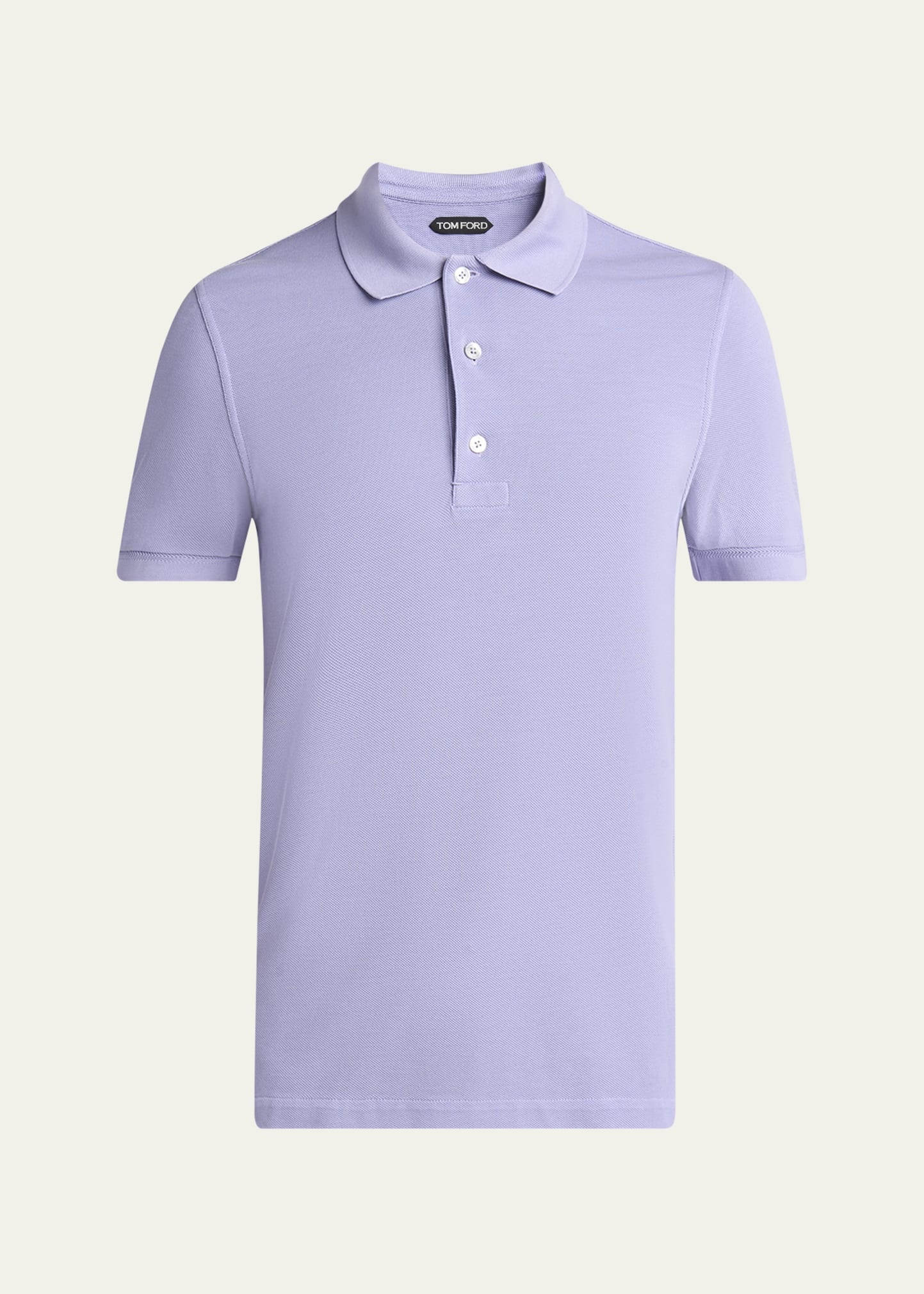 TOM FORD solid polo shirt in lyocell pique fabric Spread collar Three-button placket Short sleeves Uneven vented sides Embroidered TF logo on hem Pullover style Lyocell Professional cleaning recommended Made in Italy Online Inquiries: BGS21_NCK42| Store Inquiries: #4896494