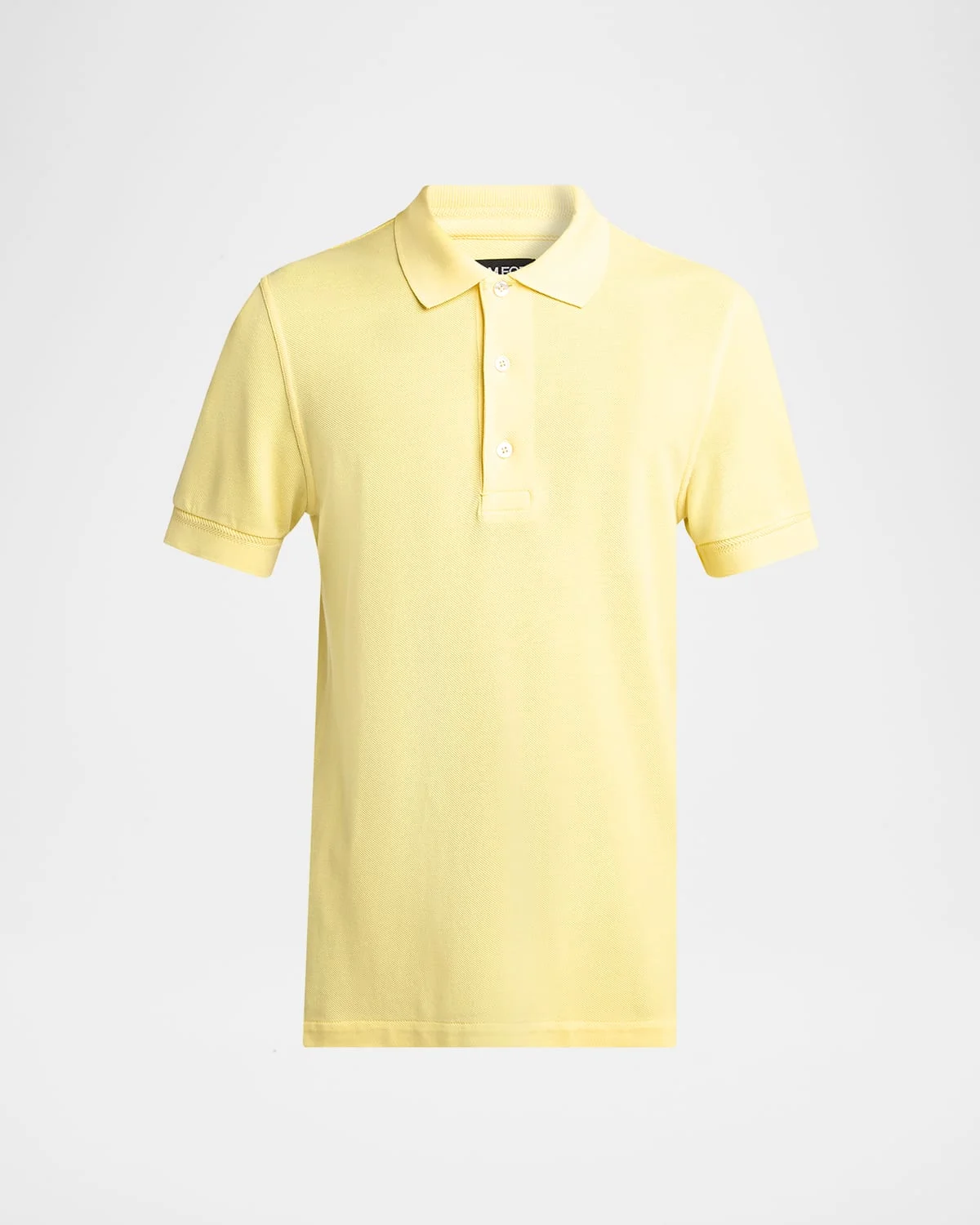 TOM FORD solid polo shirt in lyocell pique fabric Spread collar Threebutton placket Short sleeves Uneven vented sides Embroidered TF logo on hem Pullover style Lyocell Professional cleaning recommended Made in Italy