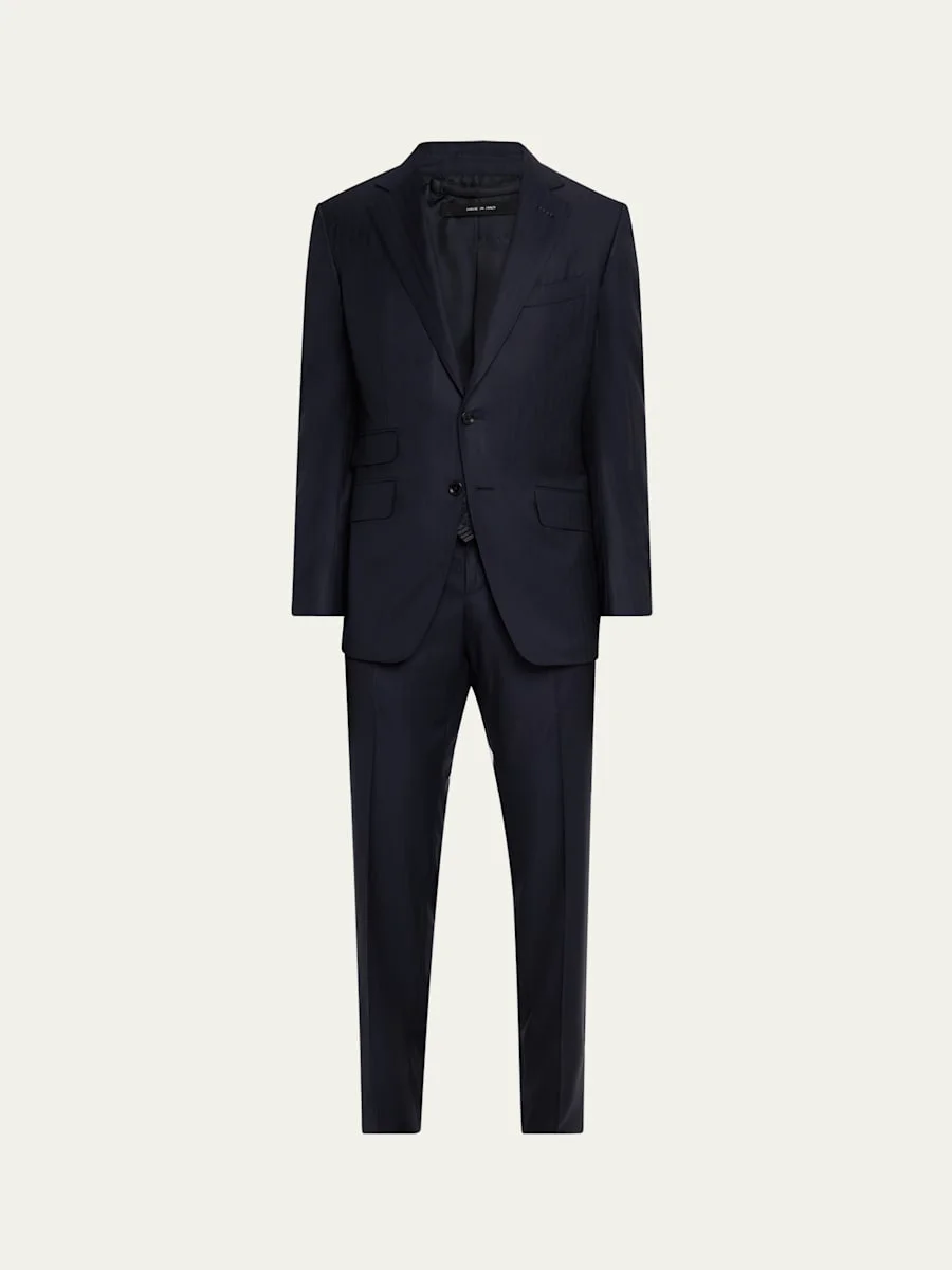 TOM FORD "O'Connor" suit in tonal herringbone Wool/silk Water buffalo buttons Lining: Cotton/cupro/modal/viscose Made in Italy Jacket: Notch lapels; buttonhole on left lapel Two-button closure Chest welt pocket Hip flap pockets Ticket pocket Interior welt pocket Unfinished sleeves Double-vented back Trousers: Regular rise Side adjusters Flat front Extended hook-and-bar closure Front slant pockets Back welt pockets Full length Unfinished hem to be tailored to desired length Proposition 65 warning for California residents Online Inquiries: BGS21_NCS2J| Store Inquiries: #4940594