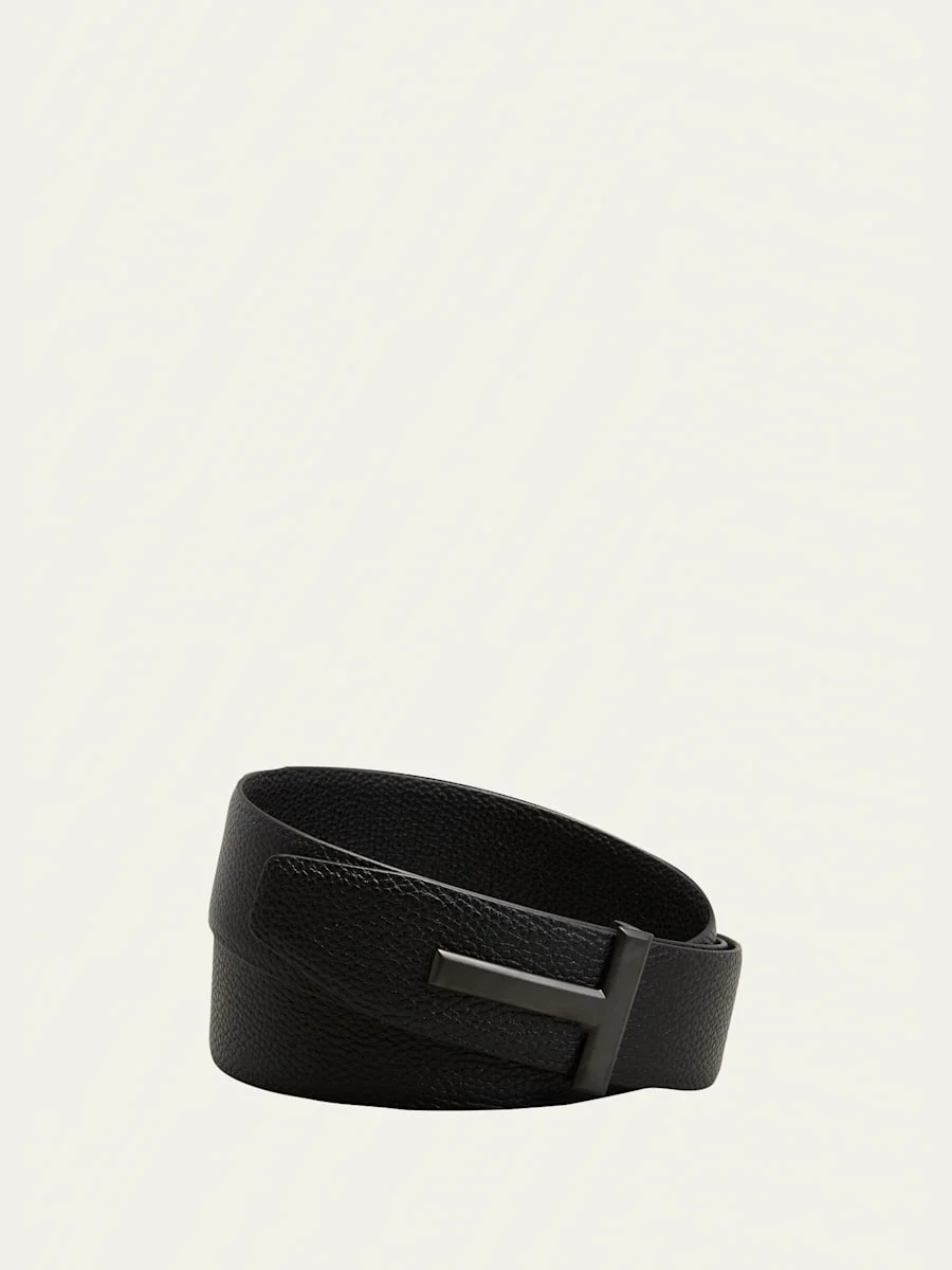 TOM FORD belt in grained calf leather featuring reversible gunmetal T-buckle Approx. 1.6"H Adjusatble fit Made in Italy Online Inquiries: BGS21_N8SAB| Store Inquiries: #4205764