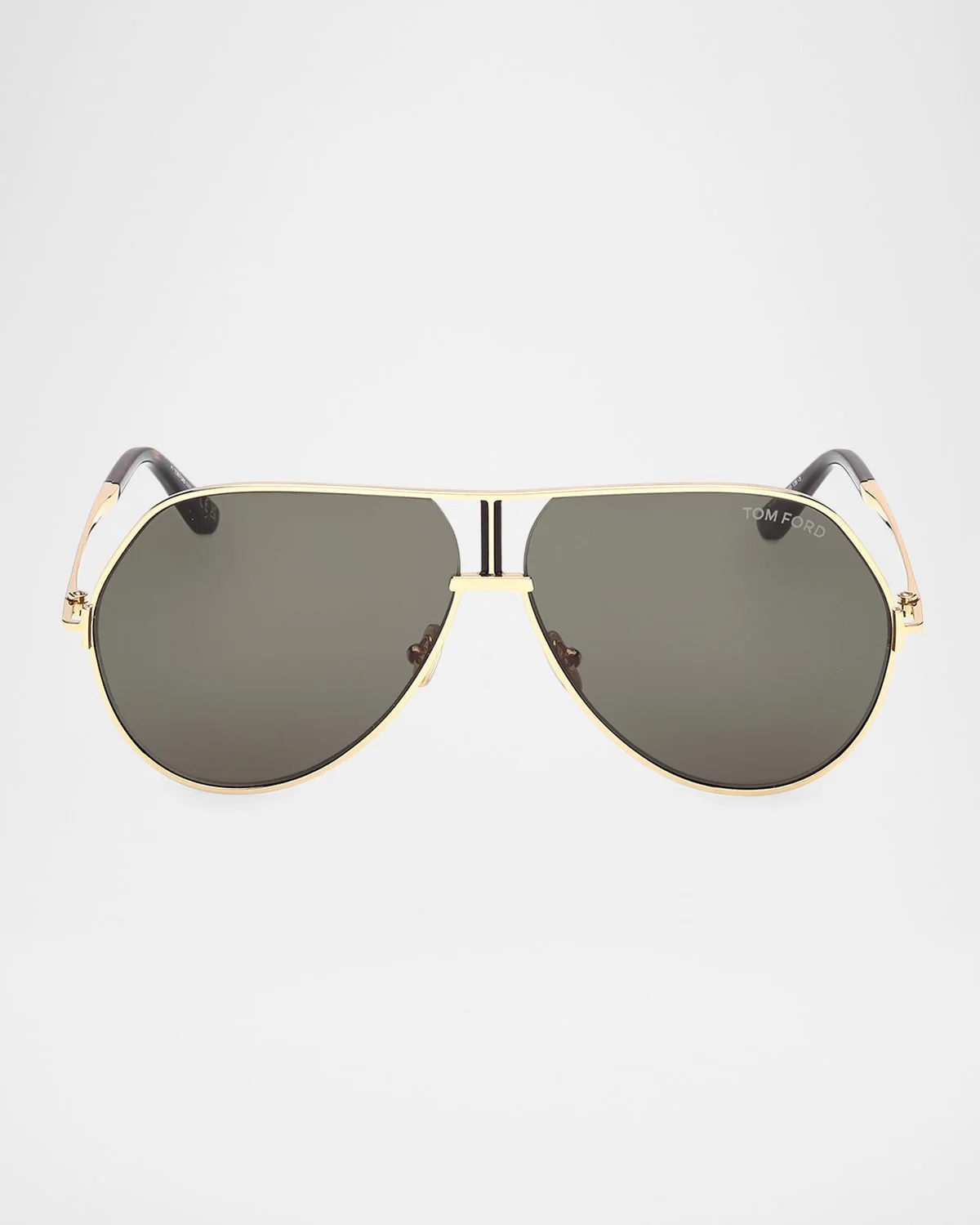 TOM FORD "Rickie-02" aviator sunglasses in luxurious metal Lens/bridge/temple (in mm): 63-10-135 Solid-color lenses Left lens logo script Double-nose bridge Adjustable nose pads Signature metal T temple decoration Thin arms Curved, capped temple tips Metal 100% UVA/UVB protection Made in Italy Proposition 65 warning for California residents