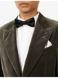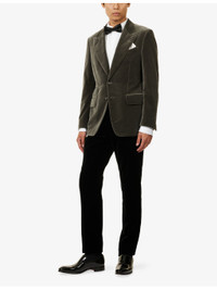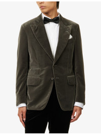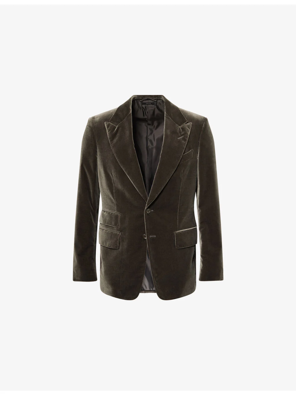 PRODUCT DETAILS - Tom Ford velvet jacket - 100% cotton - Exposed button fastening at front - Regular fit, notched lapels, padded shoulders, long sleeves, welt pocket at chest, darts at front, three flap pockets at front, single vent at back, three slip pockets at interior, fully lined - Unfinished hems, ready for tailoring - Specialist dry clean - Jacket size UK 50: length 32.2in / 82cm, chest 39.3in / 100cm - Model is 6ft 2in/1.88m and wears a size UK 50 - Midweight, non-stretch Ref: R04476871