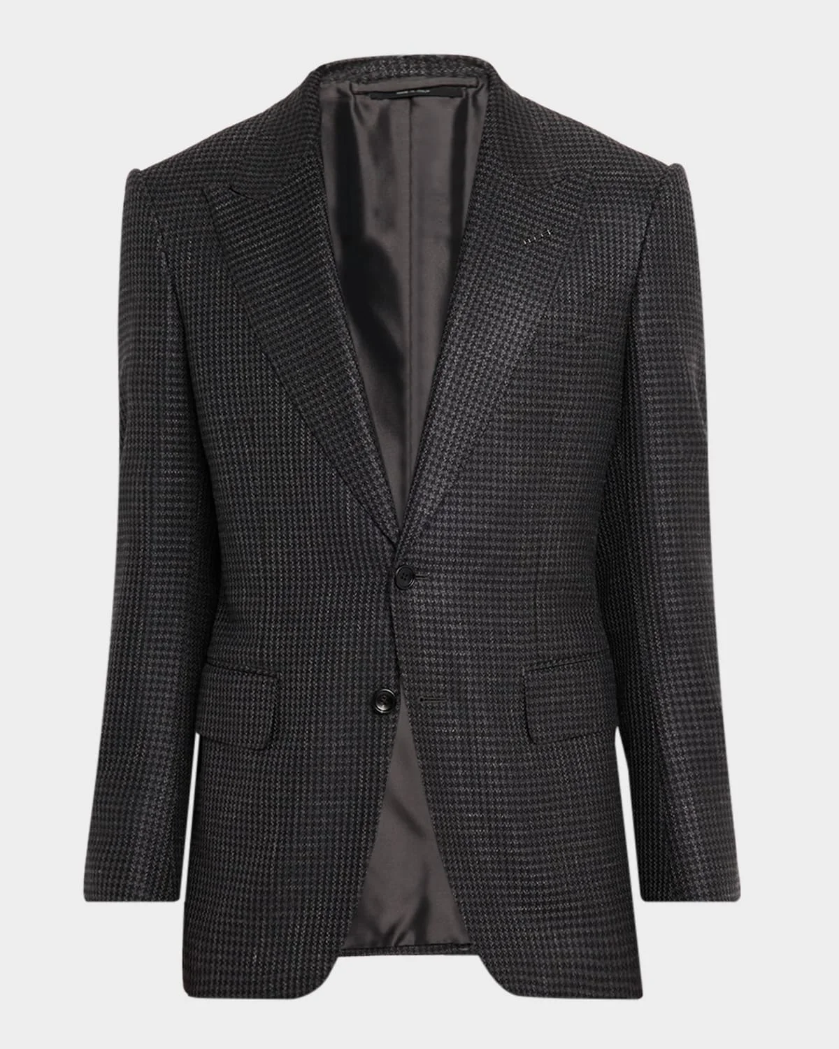 A herringbone weave adds textural interest to the houndstooth pattern on this "Shelton" sport coat from TOM FORD. Peak lapels Single-breasted front Barchetta chest pocket Hip flap pockets Double-vented back Wool/silk/linen Dry clean Made in Italy