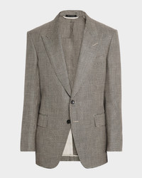 TOM FORD "Shelton" sport coat distinguished by a microhoundstooth pattern Peak lapels; buttonhole at left lapel Unfinished sleeves Chest welt pocket Hip flap pockets Interior besom pocket Cutaway hem Twobutton closure Virgin wool/silk Professional cleaning recommended Made in Italy