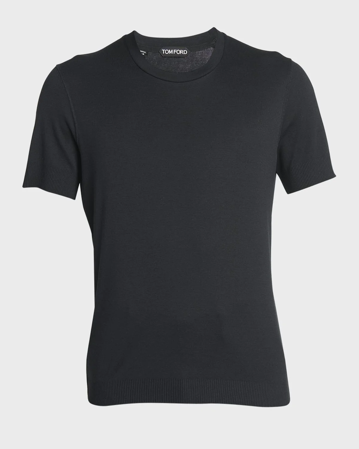 - TOM FORD solid crewneck sweater - Crew neckline - Short sleeves - Ribbed cuffs and hem - Pullover style - Lyocell/cotton - Dry clean - Made in Portugal - Model is 6'1"/185cm.