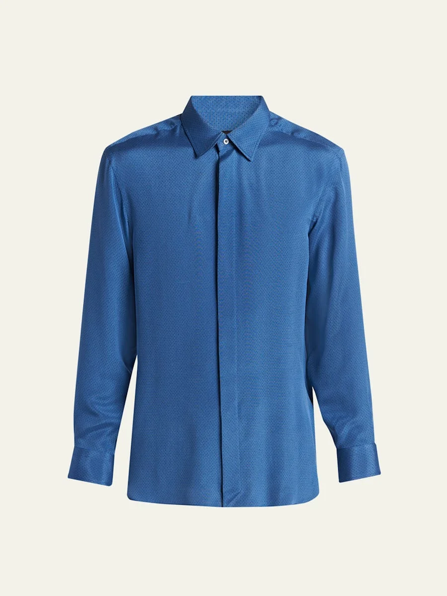 Men's Silk Jacquard Micro-Dot Concealed-Placket Sport Shirt