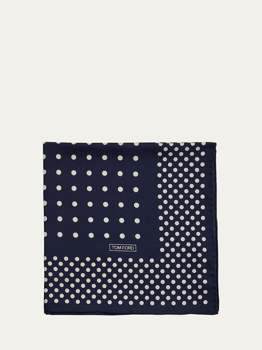 TOM FORD pocket square in a multidot pattern Approx. 15.7"L x 15.7"W May be styled multiple ways Logo lettering Silk Professional cleaning recommended Made in Italy