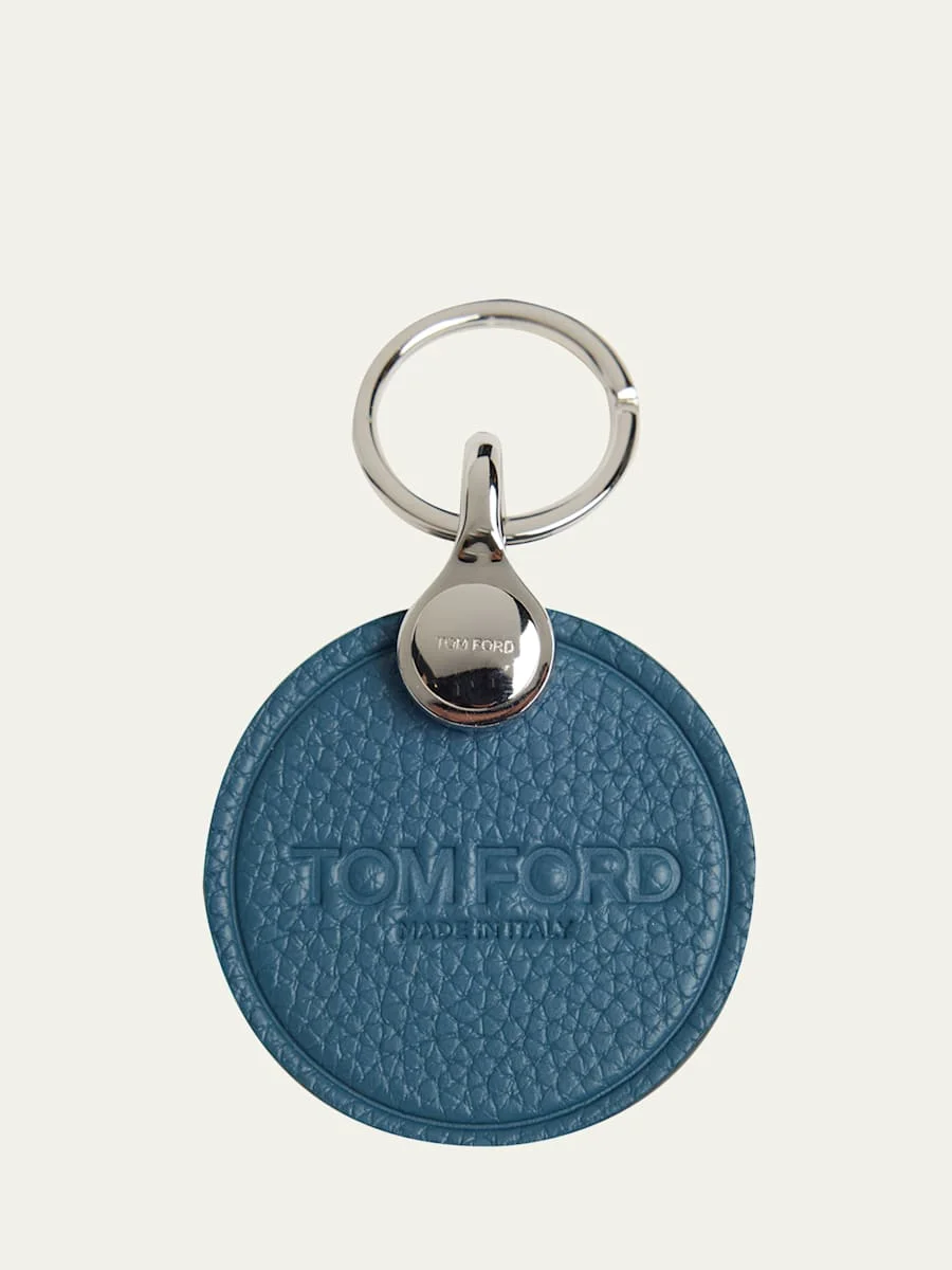 TOM FORD keyring in soft grain leather embossed with the iconic logo signature on both sides Silvertone press stud Split ring Item Weight (Lbs.): 0.2 Professional cleaning recommended Made in Italy