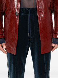 piped-trim velour track pants Highlights - Cobalt blue - Elasticated drawstring waistband - Two side inset pockets - Two rear patch pockets Made in Italy Composition Outer: Cotton 80%, Polyamide 18%, Elastane 2% Lining: Cotton 100% SIZE & FIT Model measurements Height 6 ft 2 in(1.87 m) Bust/Chest 37.79 in(96 cm) Hips 37.79 in(96 cm) Waist 30.31 in(77 cm) Washing instructions Dry Clean Only