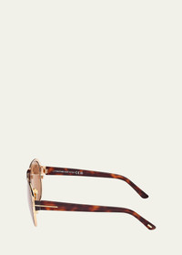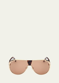 TOM FORD "Vicenzo" aviator sunglasses with metal and acetate frames Eye/bridge/temple (in mm): 64-7-145 Solid-color lenses Left lens logo script Saddle nose bridge Adjustable nose pads Metal T-temple decoration Temple tips with inlaid logo Metal/acetate 100% UVA/UVB protection Made in Italy Proposition 65 warning for California residents Online Inquiries: BGS21_NBLFE| Store Inquiries: #4664648