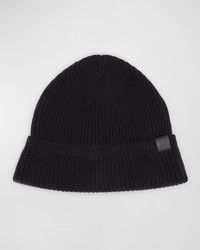 - TOM FORD beanie hat in ribbed wool and cashmere - Leather TF accent on the fold-over cuff - Wool/cashmere - Made in Italy