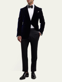 TOM FORD cocktail jacket in solid velvet Peak lapels; two-button front Welt pockets Unfinished sleeves Single back vent Wool/silk Made in Italy Model is 6'1"/185cm. Online Inquiries: BGS21_NB1ZL| Store Inquiries: #4566891