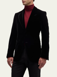 TOM FORD cocktail jacket in solid velvet Peak lapels; two-button front Welt pockets Unfinished sleeves Single back vent Wool/silk Made in Italy Model is 6'1"/185cm. Online Inquiries: BGS21_NB1ZL| Store Inquiries: #4566891