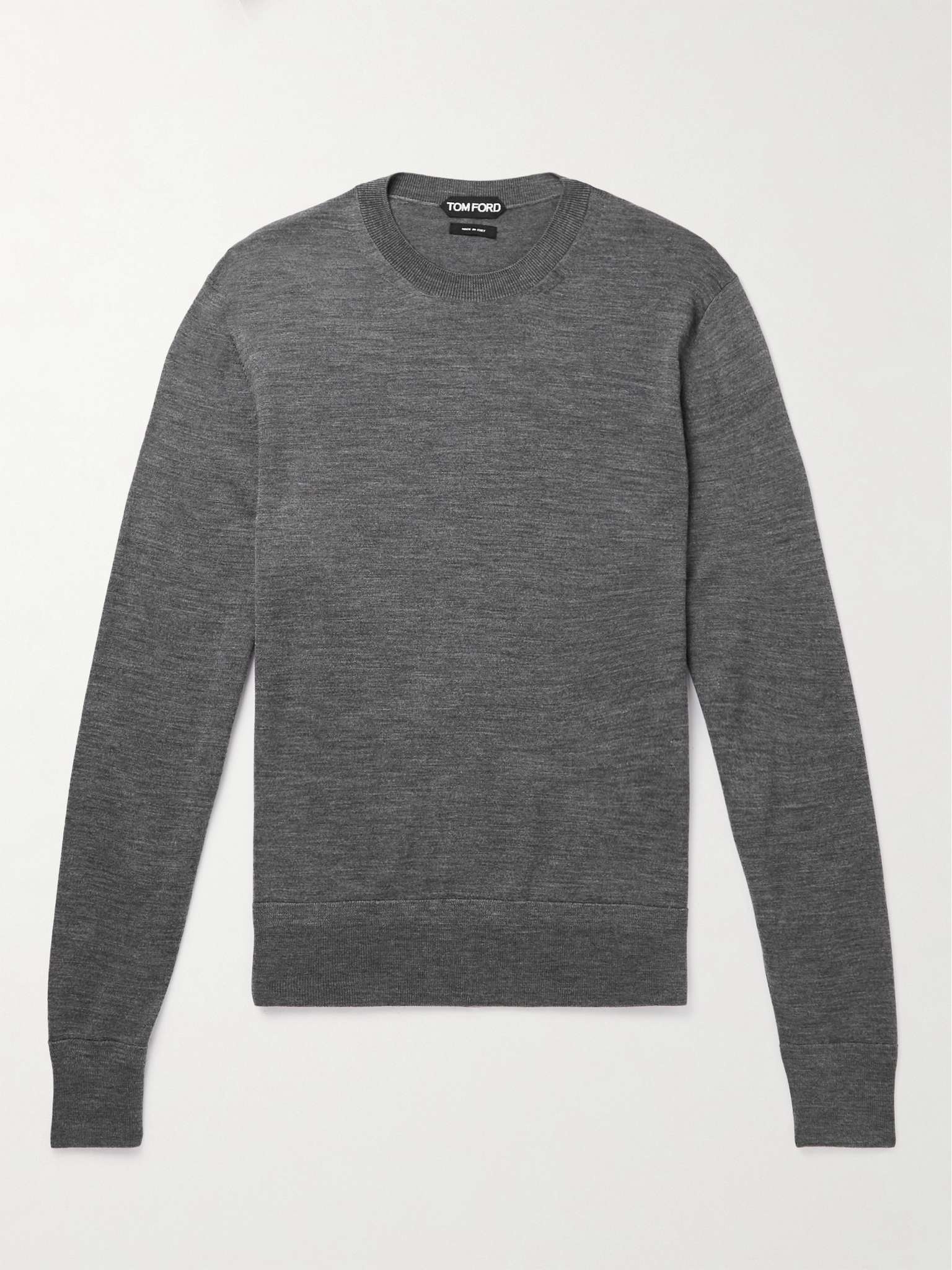 TOM FORD's sweater is incredibly versatile, so you can team it with a suit in lieu of a shirt. It's been knitted with a fine gauge in Italy from merino wool and is bordered with ribbed trims. Care for it well and it'll be in your wardrobe for many seasons to come. Size & Fit - Fits true to size. Take your normal size - The model is wearing a size larger to achieve a looser fit across the shoulders - This sweater is designed for a regular fit - Fine knit - Model wears an IT 48 - Model measures: chest 36"/ 92cm, height 6'1"/ 185cm Details & Care - Grey merino wool - Crew neck, ribbed trims - 100% merino wool - Hand wash or dry clean - Made in Italy