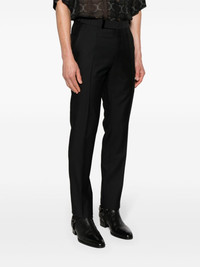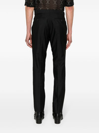 mid-rise tailored trousers Highlights - Black - Wool-silk blend - Tonal logo-engraved hardware - Tailored cut - Mid-rise - Concealed front button, hook and zip fastening - Adjustable side straps - Two diagonal pockets to the sides - Two rear button-fastening jetted pockets - Pressed crease Made in Italy Composition Outer: Wool 92%, Silk 8% Lining: Cupro 100% SIZE & FIT Model measurements Height 6 ft 2 in(1.87 m) Bust/Chest 37.79 in(96 cm) Hips 37.79 in(96 cm) Waist 30.31 in(77 cm) FittingInformation Designed for a slim fit, offering a comfortable fit that sits just away from the leg The adjustable tabs allow for fitted preferences Made from a midweight non-stretch fabric, this piece offers minimal elasticity when worn This piece fits true to size – take your usual size Washing instructions Dry Clean Only