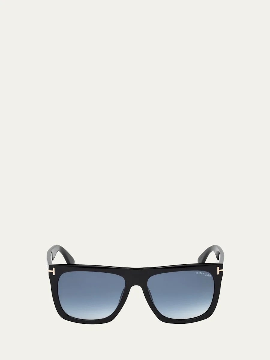 Tom Ford "Morgan" sunglasses. Eye/bridge/temple (mm): 5717140. Thick square acetate frames. Blue gradient lenses. Metal "T" insets at temples. 100%25 UVA/UVB protection. Made in Italy.