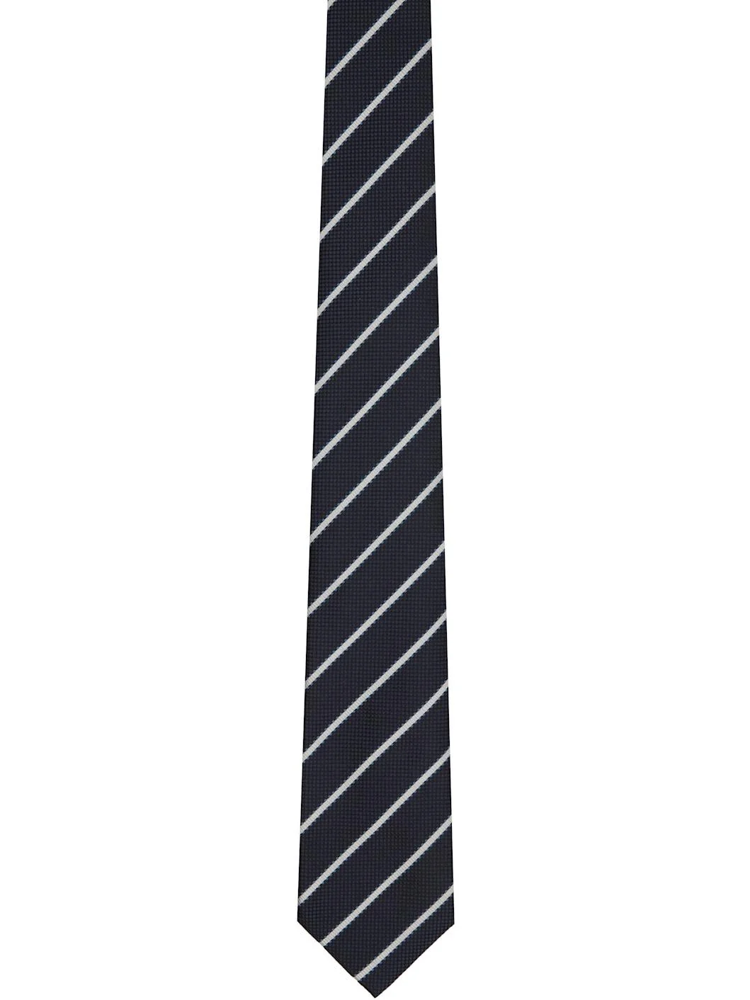 Woven silk tie. · Jacquard stripes throughout · Keeper loop at back face · W3" Supplier color: Marine blue 100% silk. Made in Italy 252076M158007