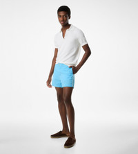 - SWIM SHORT WITH IVORY PIPING DETAIL - CLASSIC FIT - MESH LINING - ZIPPED SINGLE BACK POCKET WITH TOM FORD RUBBER PULLER - CONCEALED TOM FORD HOOK AND SIDE ADJUSTERS IN PALE GOLD - 36CM OUTSIDE LEG LENGTH - 100% POLYESTER - MADE IN ITALY