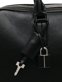 padlock detail tote bag Highlights - Black - Top handle - Silver-tone hardware - Zip fastening - Padlock charm - Logo detail Made in Italy Composition Calf Leather 100% SIZE & FIT Measurement DEPTH 7.87 in(20 cm) HEIGHT 7.87 in(20 cm) WIDTH 16.53 in(42 cm) HANDLE 7.87 in(20 cm)