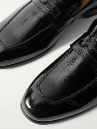Gigi Crackled Patent-Leather Penny Loafers Black