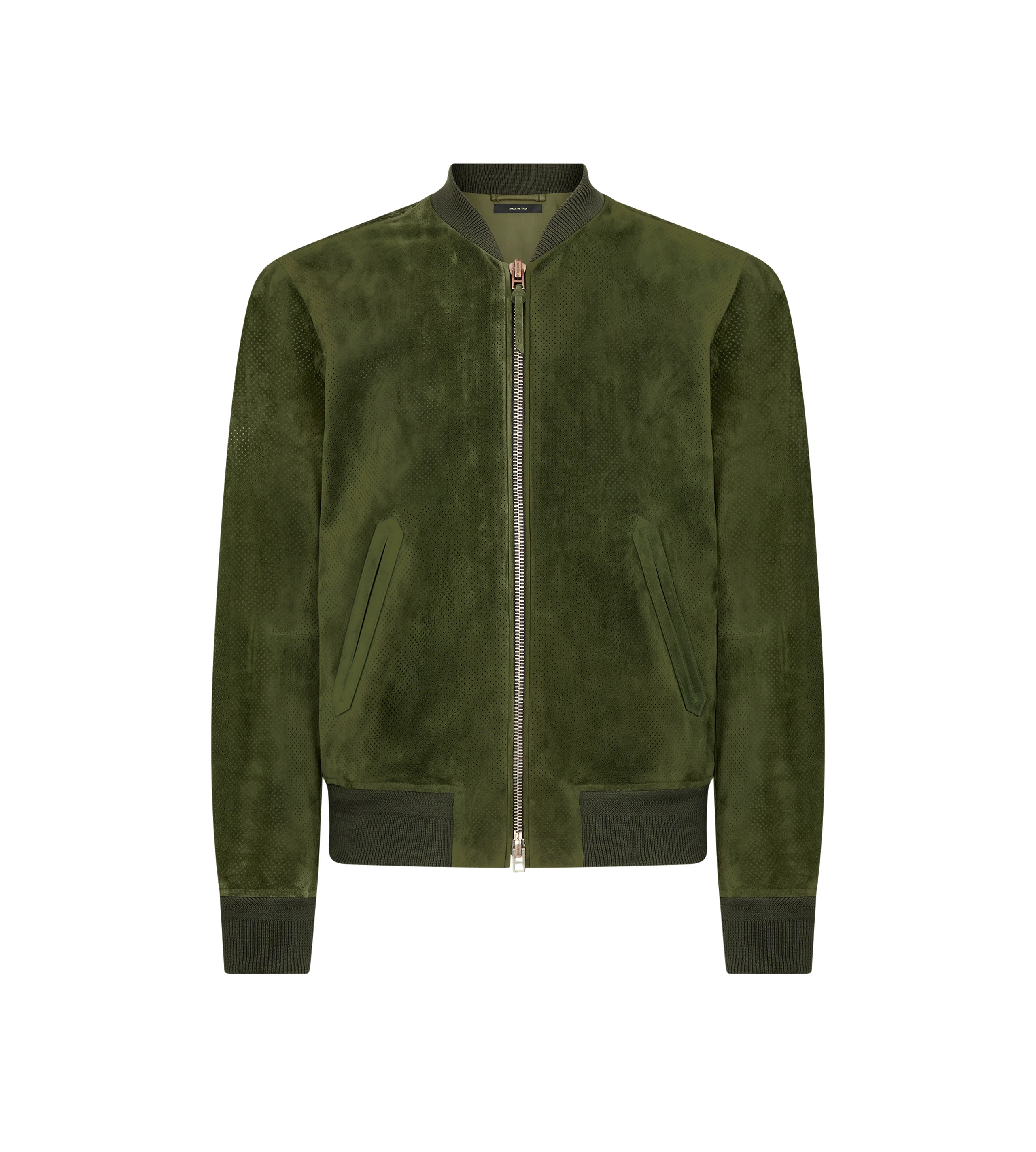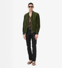 PRODUCT NO: LBS090-LMS033 The TOM FORD bomber jacket in perforated cashmere suede, unlined, it enhances breathability while maintaining refined structure. Composition: 100% calfskin Made in Italy