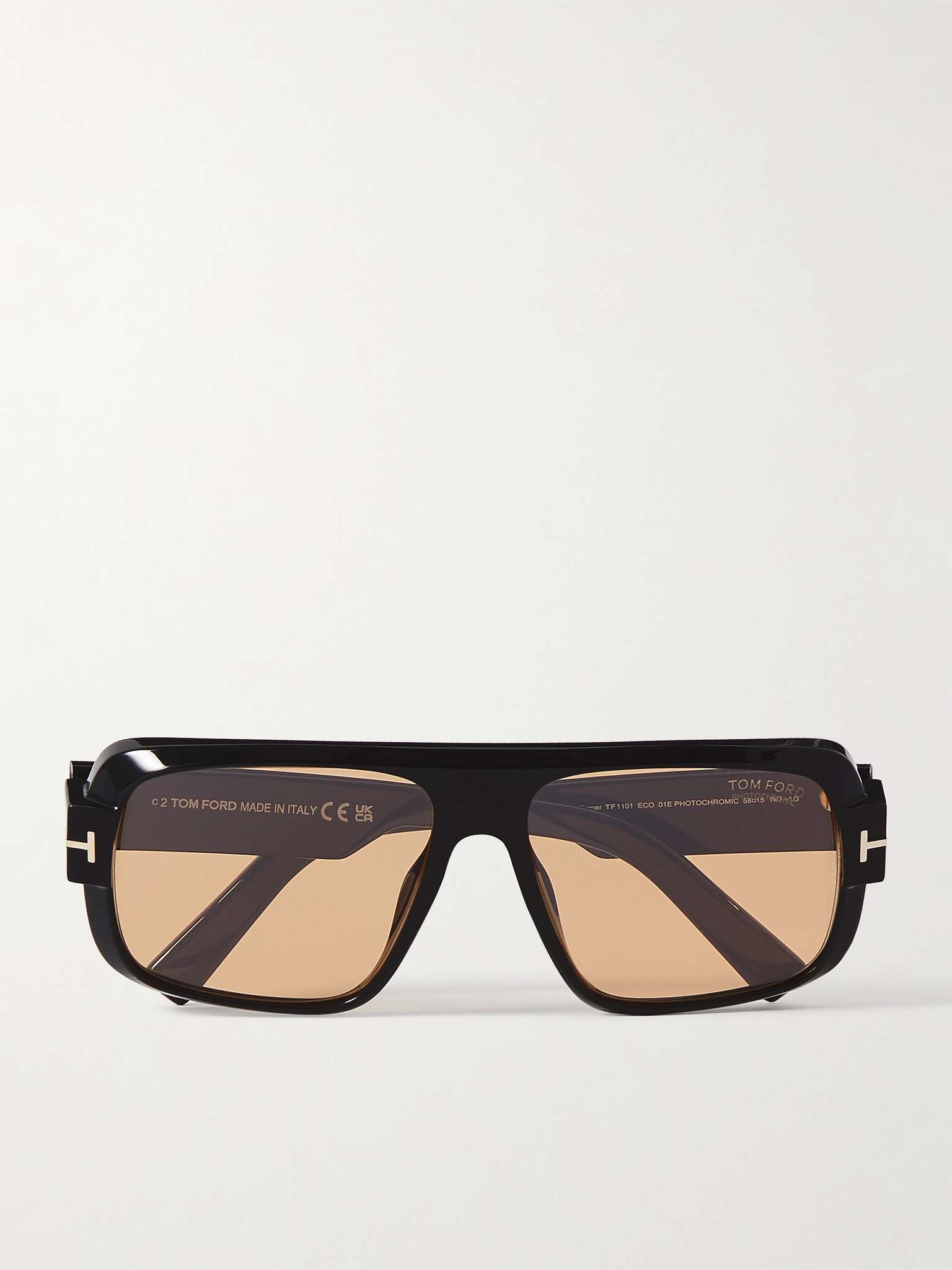TOM FORD Eyewear's 'Turner' sunglasses nod to aviator-styles. They're made from glossy acetate with yellow lenses and feature the signature 'T' emblems at the temples. Size & Fit - Frame Width: 14.5cm / 5.7in - Frame Height: 5cm / 2in Details & Care - Black acetate - Come with a case - 100% UV protection