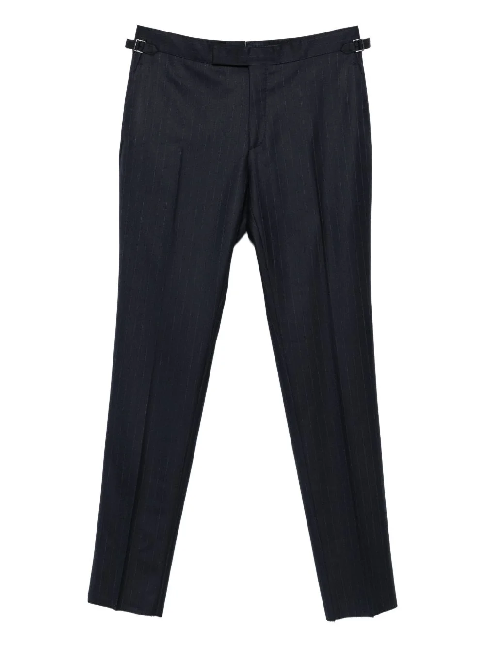pinstripe buckle-fastening trousers Highlights - Dark blue - Pinstripe pattern - Buckle fastening - Creased front Imported Composition Fabric 100% Washing instructions Read Manufacturer Guidelines