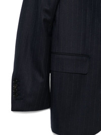 pinstripe two-button blazer Highlights - Navy blue - Pinstripe pattern - Single-breasted closure - Notched lapel - Welt-flap pockets - Button cuffs Imported Composition Fabric 100% Washing instructions Read Manufacturer Guidelines