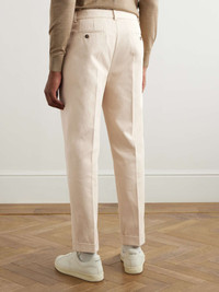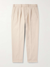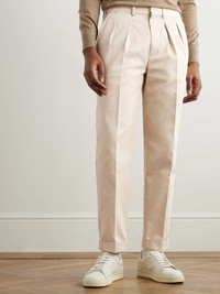 Straight-Leg Pleated Cotton-Gabardine Trousers