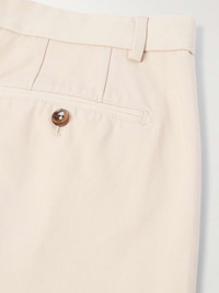 TOM FORD's double-pleated trousers are a contemporary take on classic suiting. In a straight, slightly short cut, they've been made in Italy from cotton-gabardine and have cuffed hems for a more relaxed look. Wear them with the label's low-top sneakers. Size & Fit - Fits true to size, however those who are between sizes should take the larger size - Relaxed-straight leg, mid-rise style - Slightly short in length - Mid-weight, non-stretchy fabric - Model is shown wearing a 32 - Model measures: waist size 32, height 6'0"/ 183cm Details & Care - Beige cotton-gabardine - Button and zip fastening - 100% cotton; buttons: 100% horn (Buffalo)
