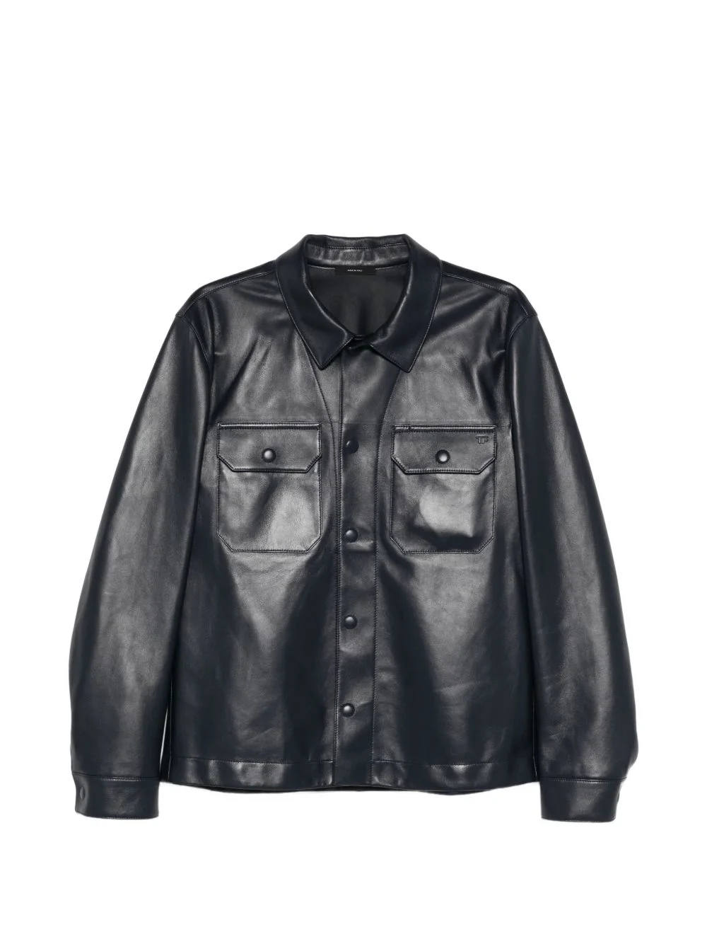 pocket leather jacket Highlights - Dark navy blue - Button fastening - Front button - Classic collar - Long sleeves - Buttoned cuffs Made in Italy Composition Outer: Lamb Skin 100% Lining: Cotton 100%, Cupro 61%, Viscose 39% Washing instructions Read Manufacturer Guidelines