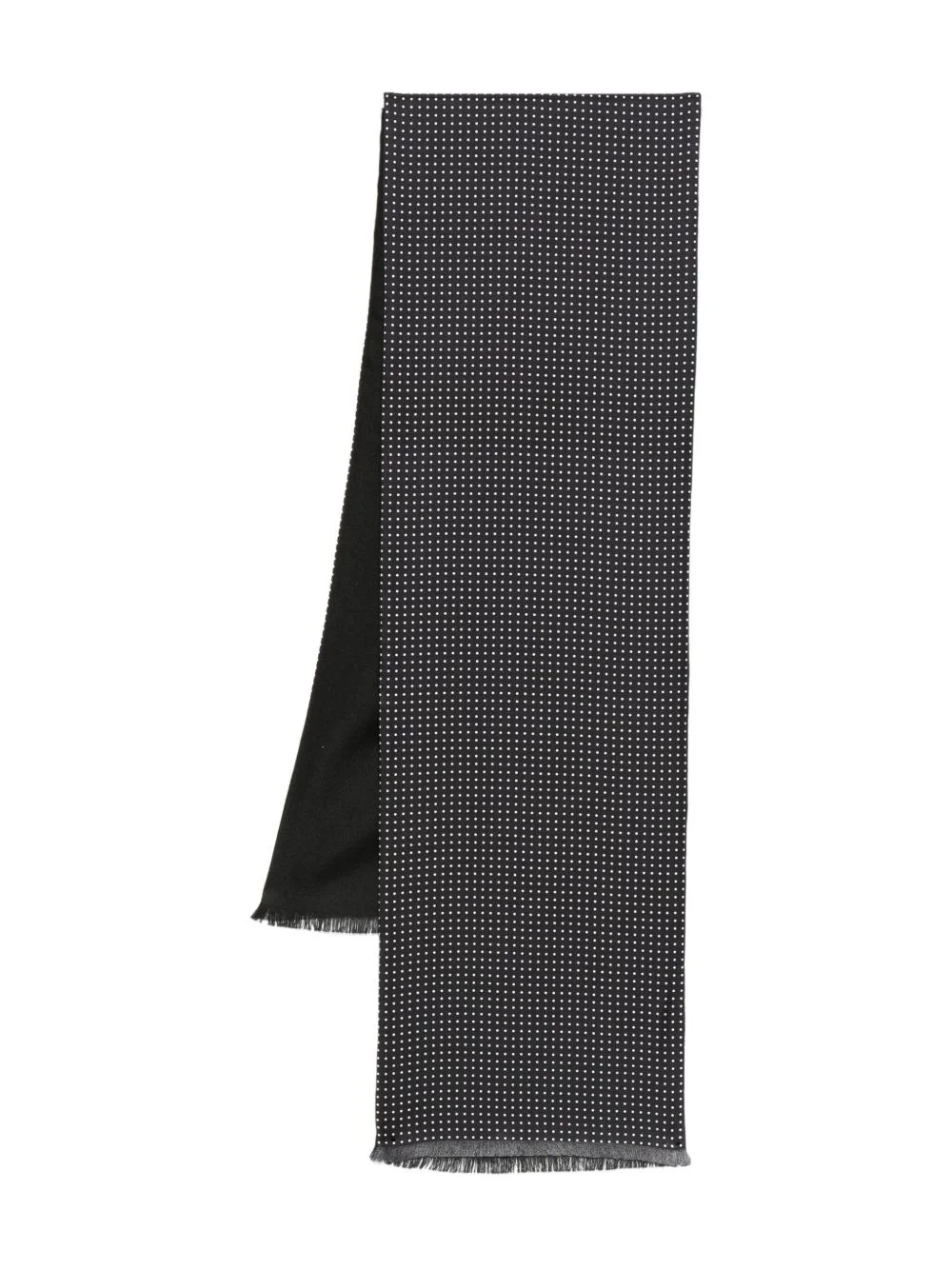 polka dot-print scarf Highlights - Black - Polka dot print - Fringed edge - Two-tone design - Silk Made in Italy Composition Silk 100% SIZE & FIT Measurement LENGTH 70.86 in(180 cm) WIDTH 7.87 in(20 cm)
