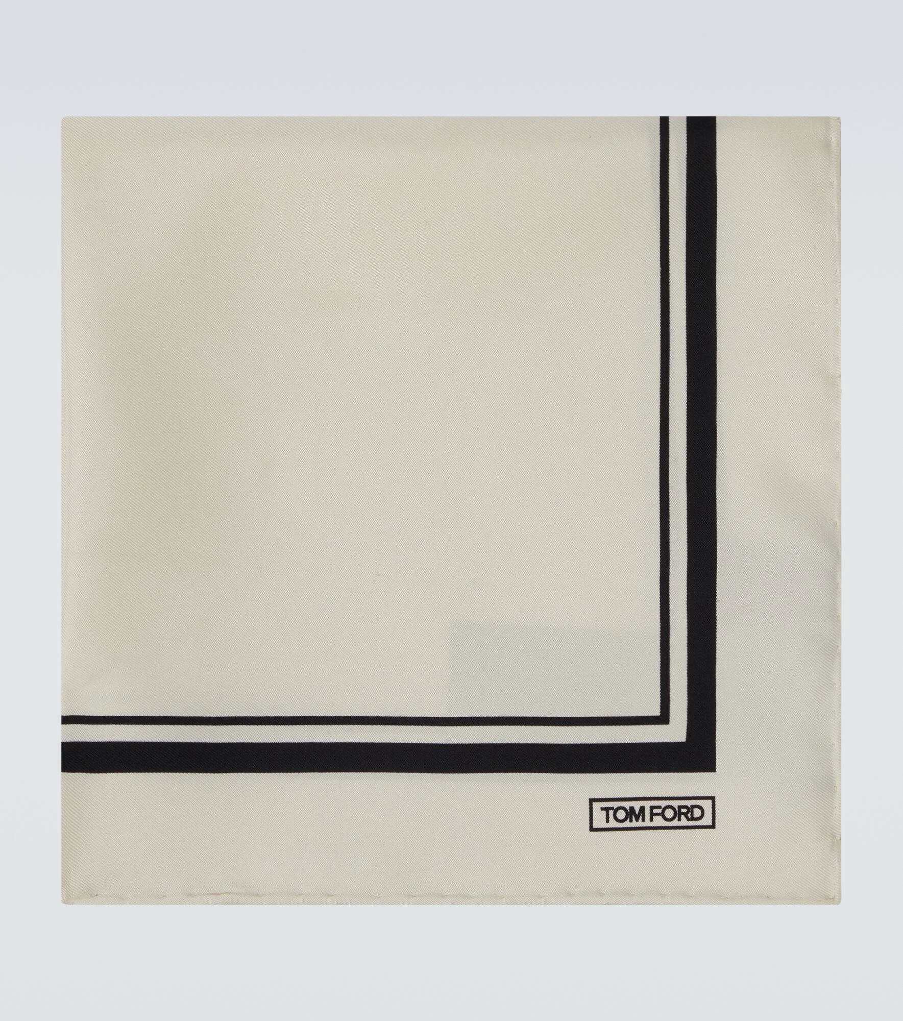 This Tom Ford pocket square teaches that the details make all the difference. Made from lustrous silk twill, this charming accessory features striped trims and subtle branding. Product Details - Material: 100% silk - Care instructions: dry clean - Made in Italy - Designer color name: Off White - Item color: white - Item number: P01097241 Size & Fit - Length 40cm-15.5" - Width 40cm-15.5"