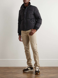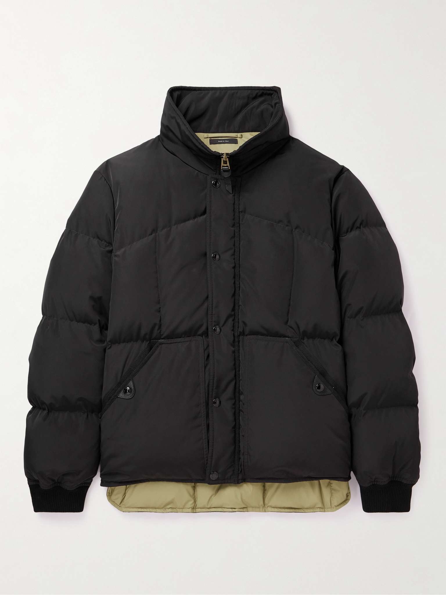 Quilted Padded Leather-Trimmed Shell Down Jacket
