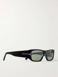TOM FORD's rectangular-frame sunglasses are instantly recognisable from the signature 'T' logo that wraps onto the wide arms. They've been crafted in Italy from durable acetate and fitted with light-green lenses. Size & Fit - Black acetate - Green lenses - Come with a case - 100% UV protection - Frame Width: 15cm / 5.9in - Frame Height: 5cm / 2in Details & Care - Black acetate - Come with a case - 100% UV protection - This item has been imported